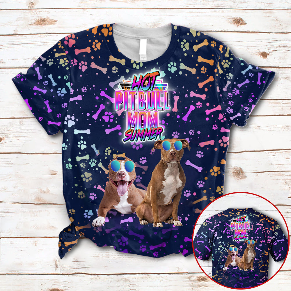 Hot PITBULL Mom Summer Neon Tropical Desing 3D All Over Print T-Shirt