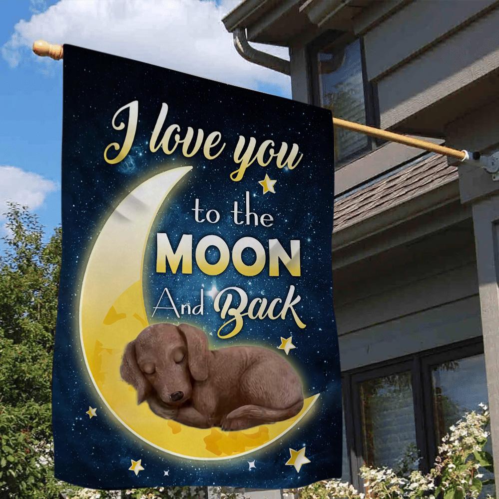Add a charm to your house with this Adorable Dog I Love You To The Moon And Back Garden Flag!This dog garden flag is a great gift for any occasion including Birthday, Mother's Day, Father's Day, Christmas, and as a "just because" present!