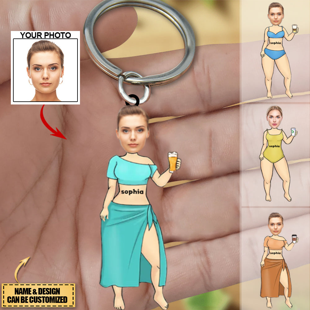 Sun Sand And Besties - Bestie Personalized Acrylic Keychain - Gift For Best Friends,Sisters -Custom Your Photo/Name