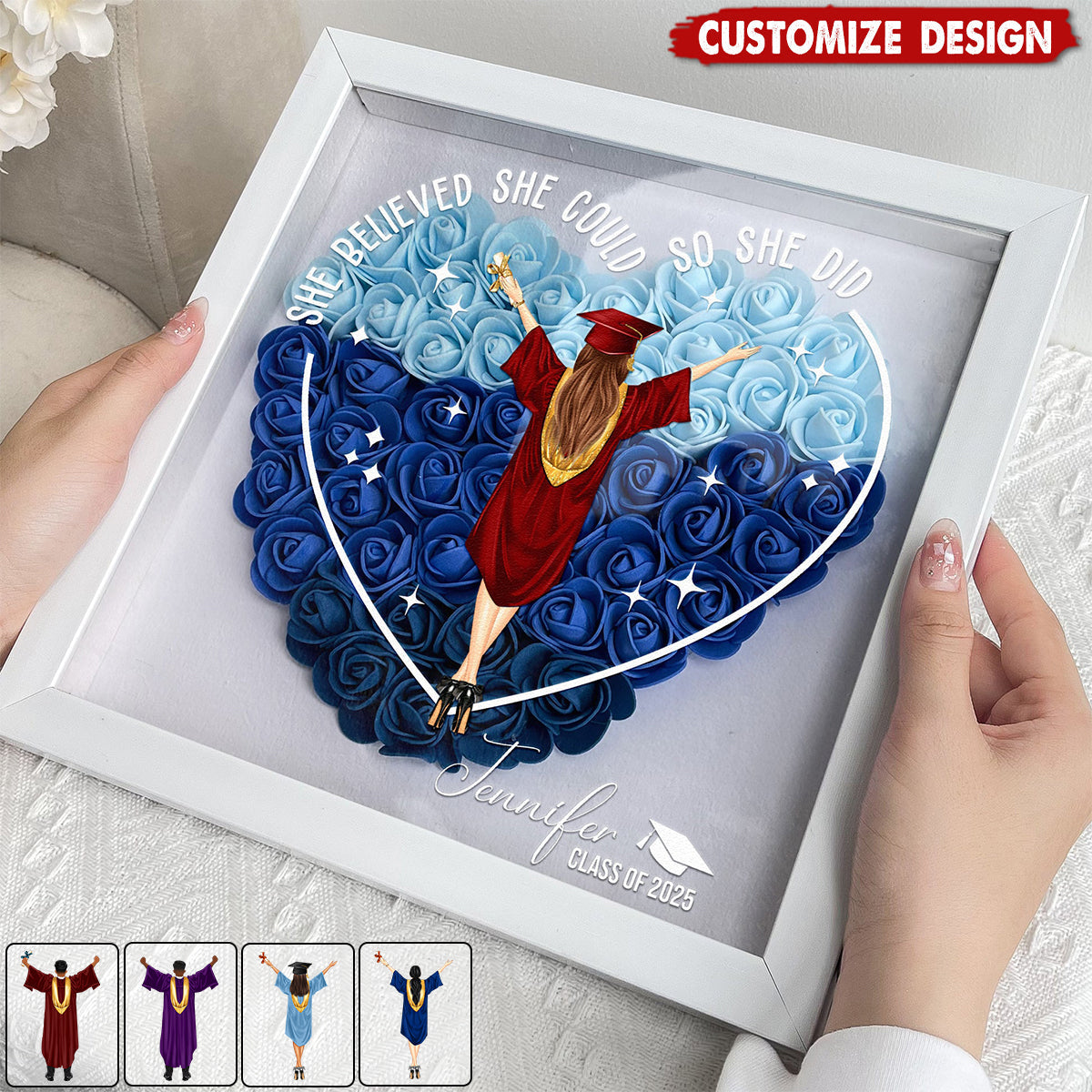 Class Of 2025 Graduation Gift So She Did - Personalized Flower Shadow Box