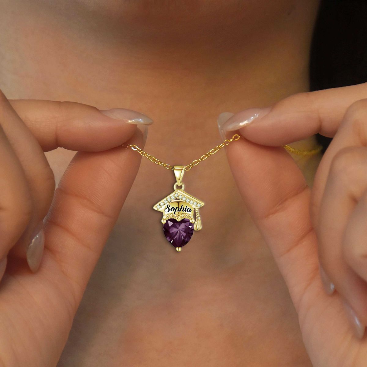 The graduation birthstone necklace is a perfect graduation gift for your best friends, classmates, granddaughter, sisters, daughter or girlfriend. Featuring a stunning birthstone of your choice, each stone symbolizes a specific month and carries its own significance. As a graduation gift to them, tell them your love and blessing. No matter what the future is, you will always support them.