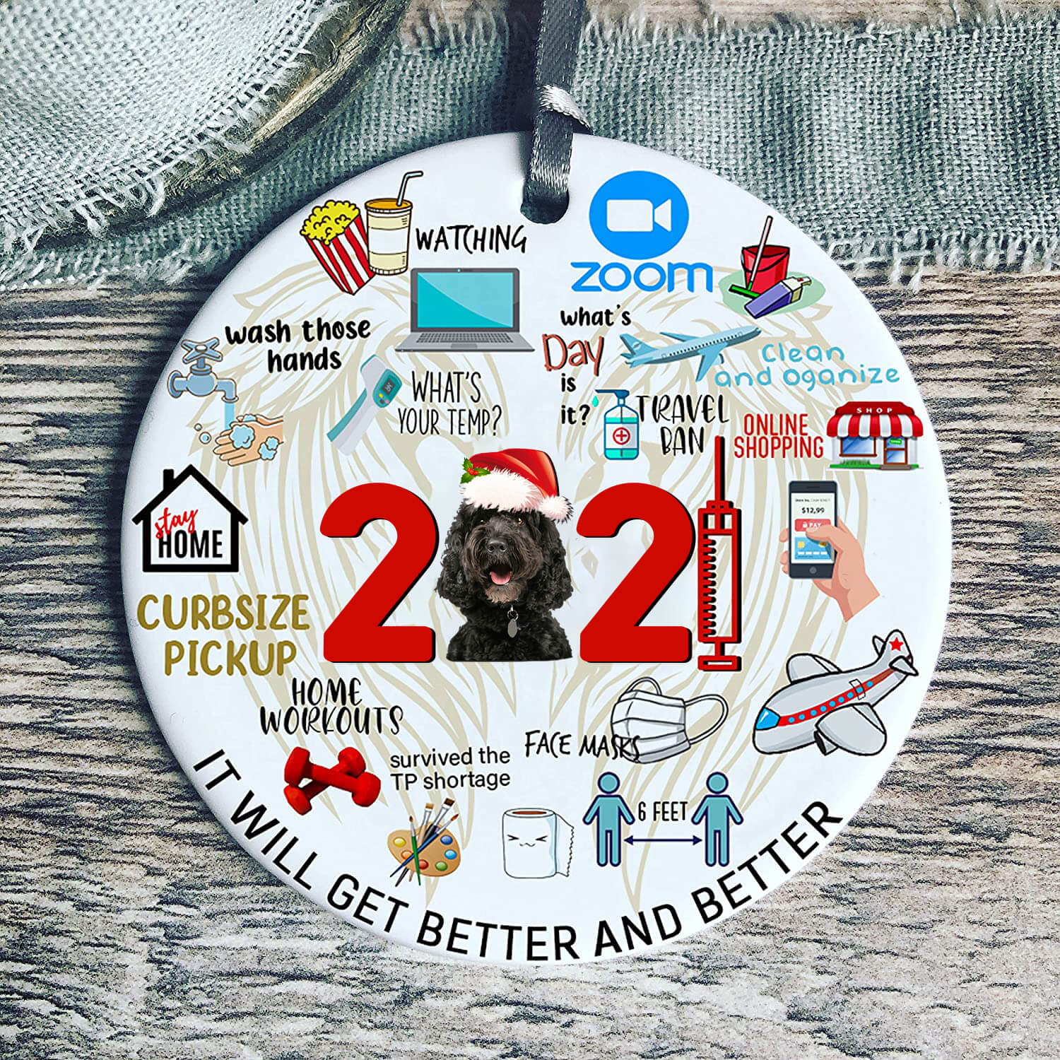 Black Cockapoo Covid Commemorative Ornament 2021 Christmas Tree Ornaments