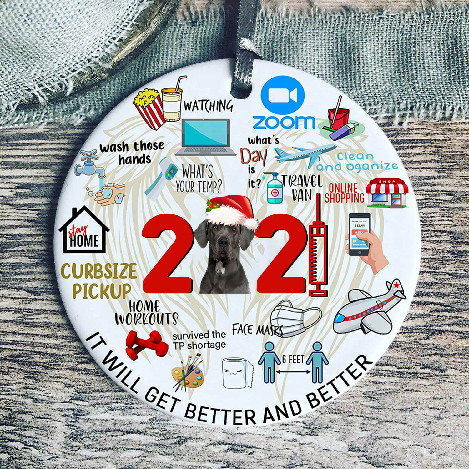 Black Great Dane Covid Commemorative Ornament 2021 Christmas Tree Ornaments