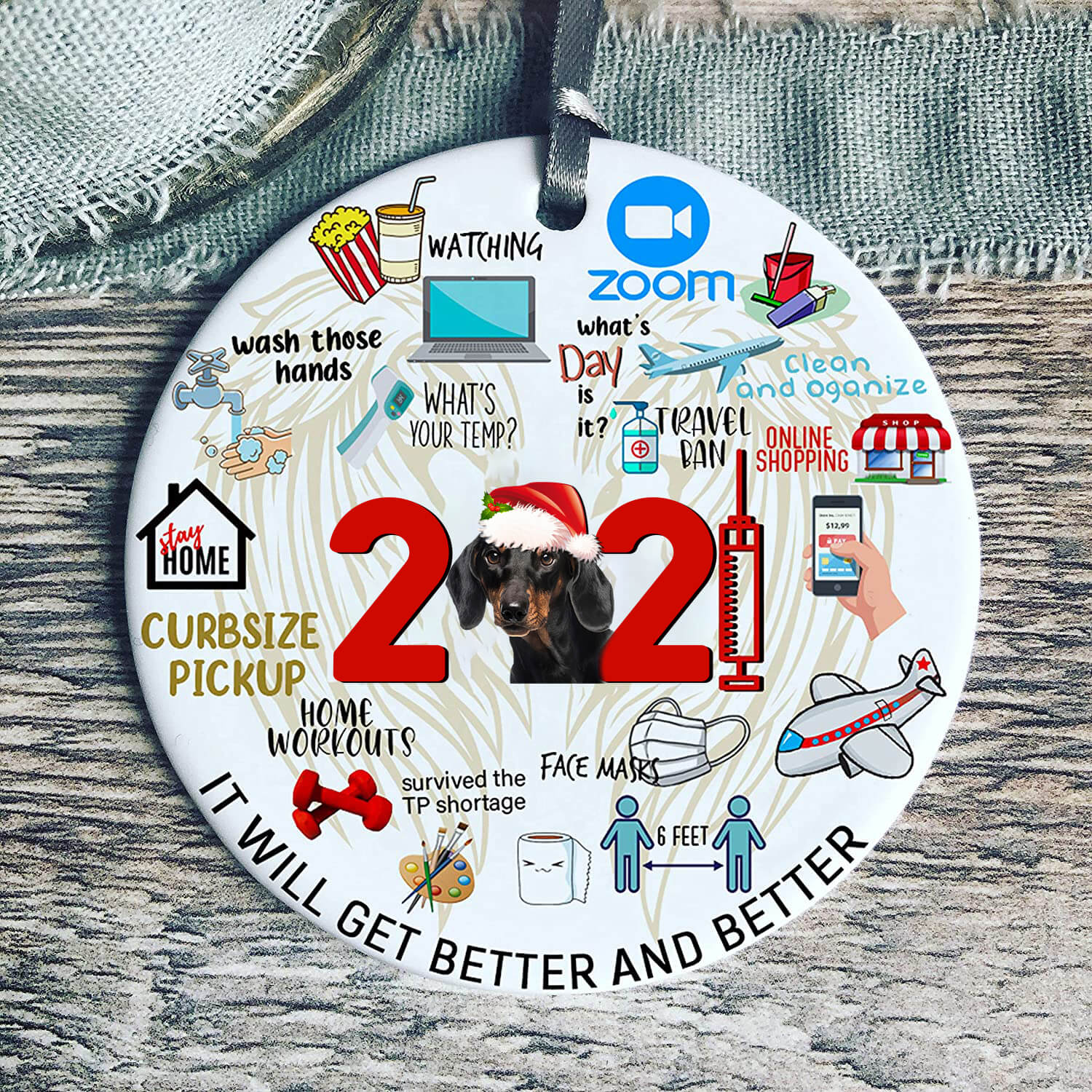 Dachshund Covid Commemorative Ornament 2021 Christmas Tree Ornaments
