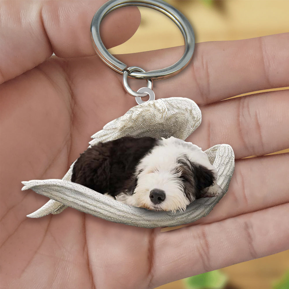 Old English Sheepdog Sleeping Angel Acrylic Keychain